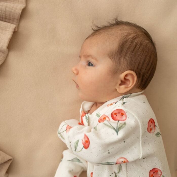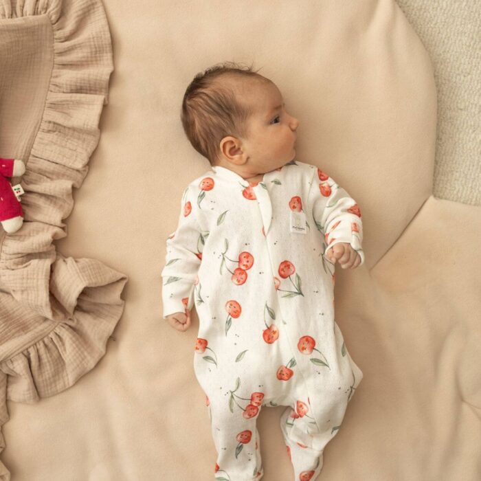 Ażurkowe śpioszki niemowlęce słoneczne owocki – wisienki