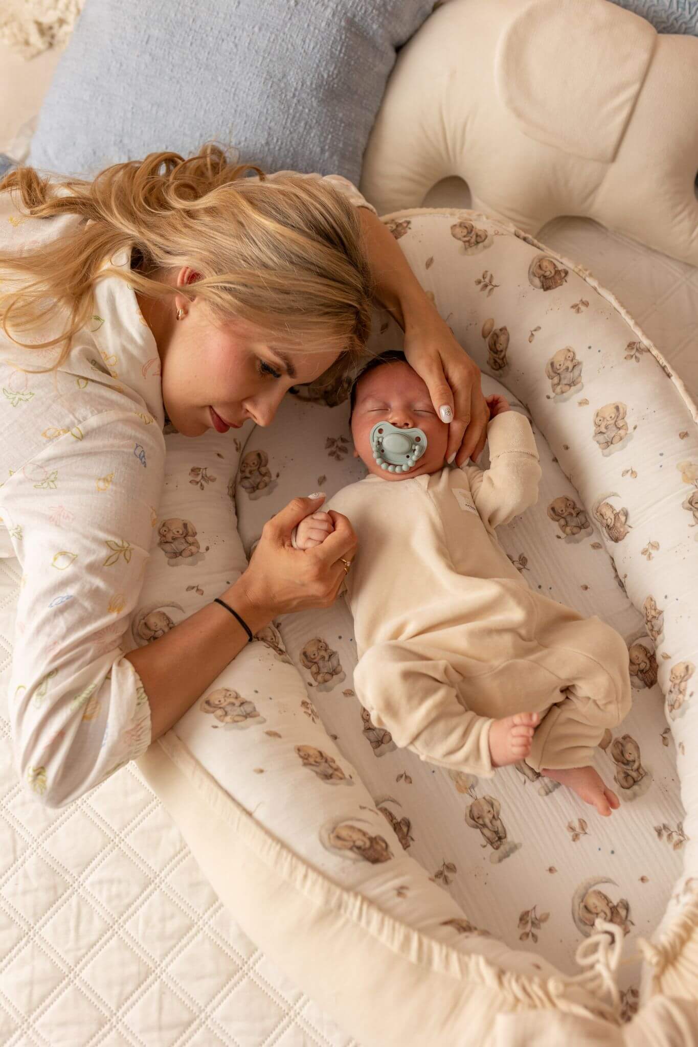 Premium Baby-Elefantenkokon – Natur (+ Matratze und Laken)