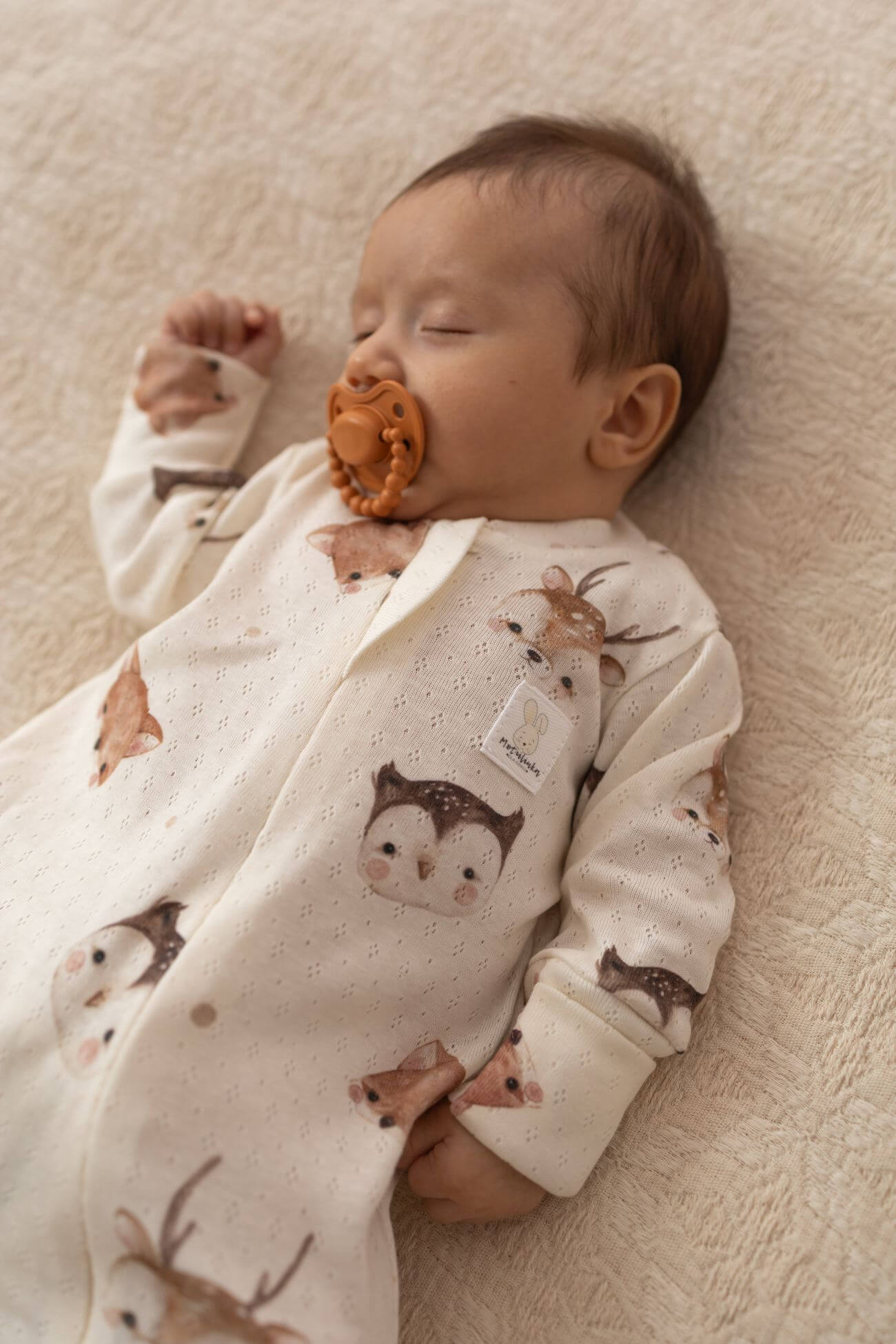 Baby sleepsuits made of soft, openwork cotton knit fabric are the perfect outfit for newborns and infants. Light, airy, and exceptionally gentle on baby's skin, they provide comfort from the first days of life.