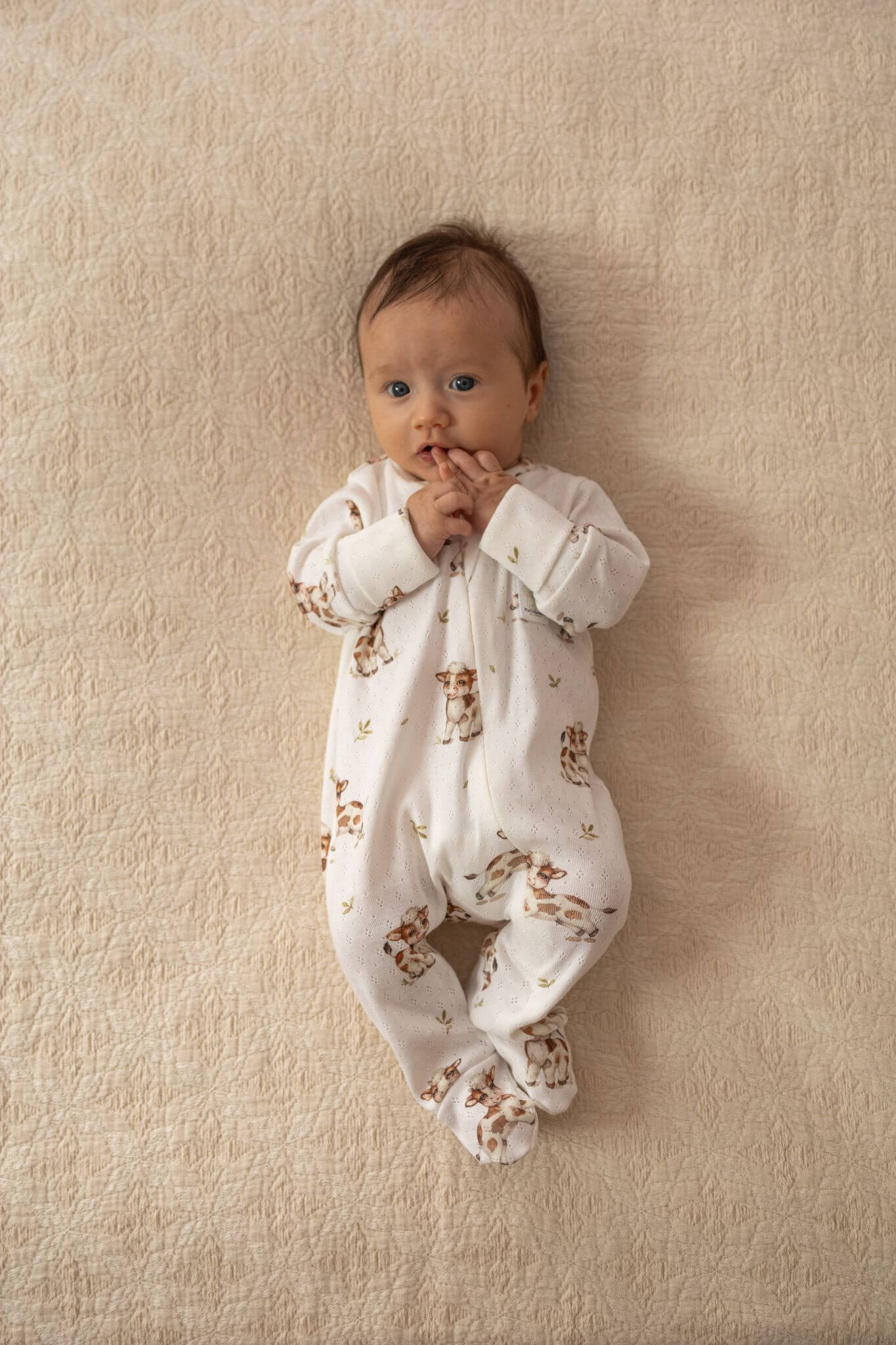 Baby sleepsuits made of soft, openwork cotton knit fabric are the perfect outfit for newborns and infants. Light, airy, and exceptionally gentle on baby's skin, they provide comfort from the first days of life.
