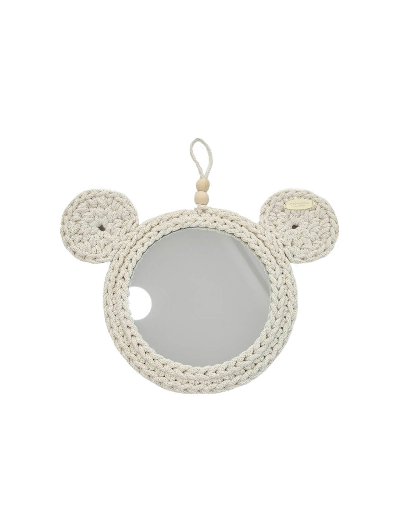 We present you a charming teddy bear mirror, which was hand-made from high-quality cotton string and solid wooden plywood. It is a unique accessory that will perfectly fit into any children's interior, adding charm, warmth and coziness.