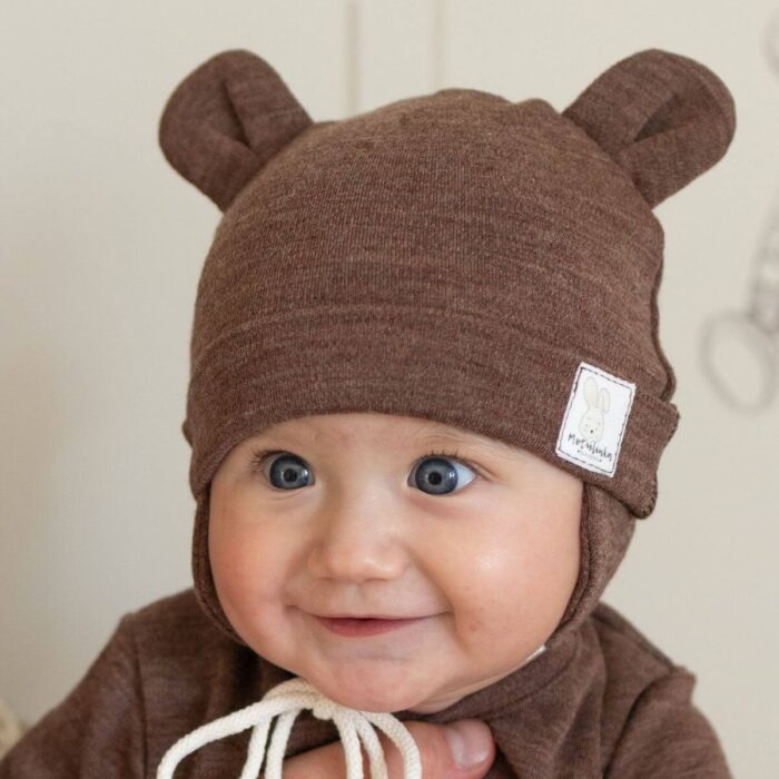 Czapeczka Wełna Merino całoroczna dla dzieci i niemowląt – czekolada