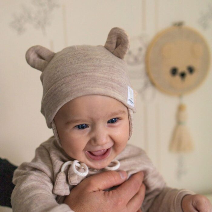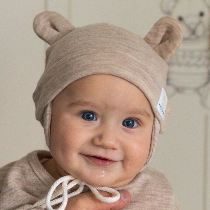 Czapeczka Wełna Merino całoroczna dla dzieci i niemowląt – jasny beż