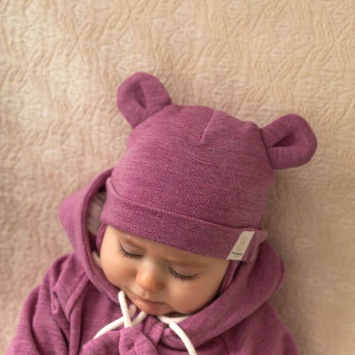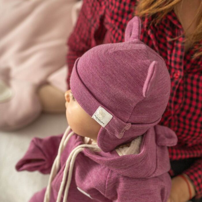 Czapeczka Wełna Merino całoroczna dla dzieci i niemowląt – wrzosowy róż