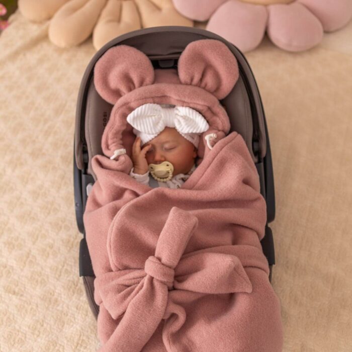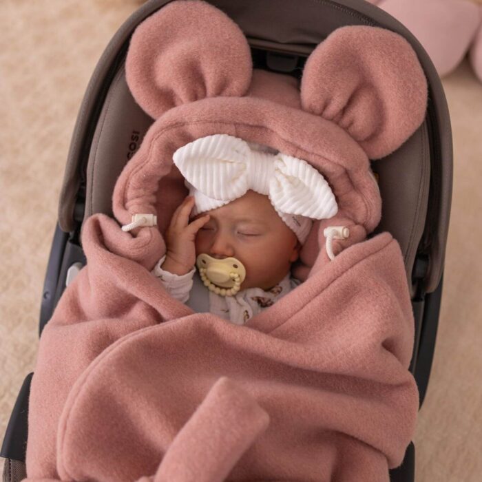 Każdy otulacz posiada uniwersalne otwory na pasy bezpieczeństwa, co pozwala na jego dopasowanie do większości fotelików samochodowych, także tych z pasami nierozdzielnymi. Wygodny kapturek dodatkowo chroni główkę dziecka przed wiatrem i zimnem, a praktyczna konstrukcja umożliwia szybkie odsłonięcie maluszka bez konieczności wyjmowania go z fotelika.
