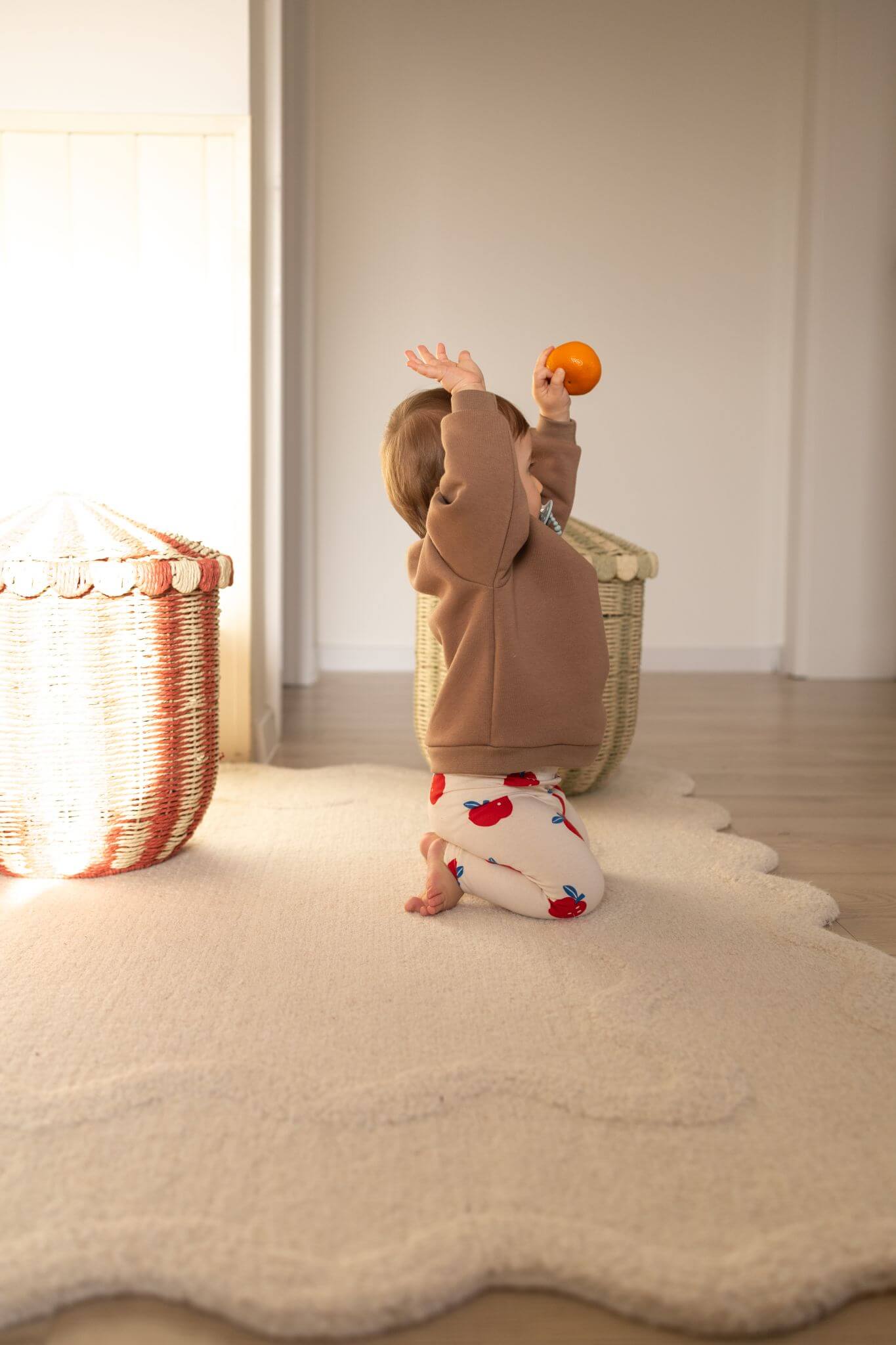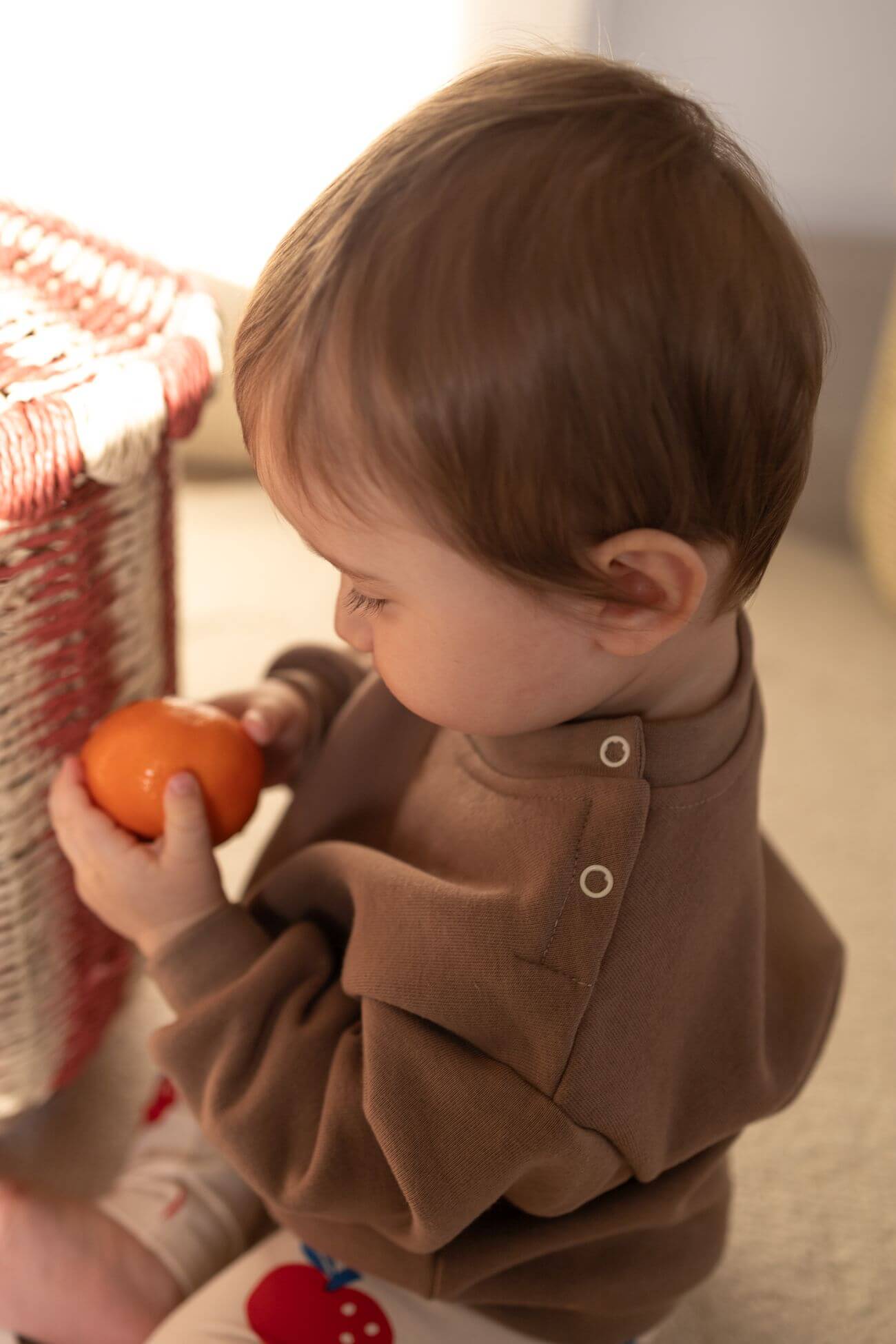 Prosty, lekko oversize’owy krój zapewnia wygodę noszenia oraz swobodę ruchów podczas zabawy i codziennych aktywności. Elastyczne ściągacze przy rękawach i dole bluzy pomagają utrzymać odpowiednie dopasowanie, a jednocześnie nie uciskają.
