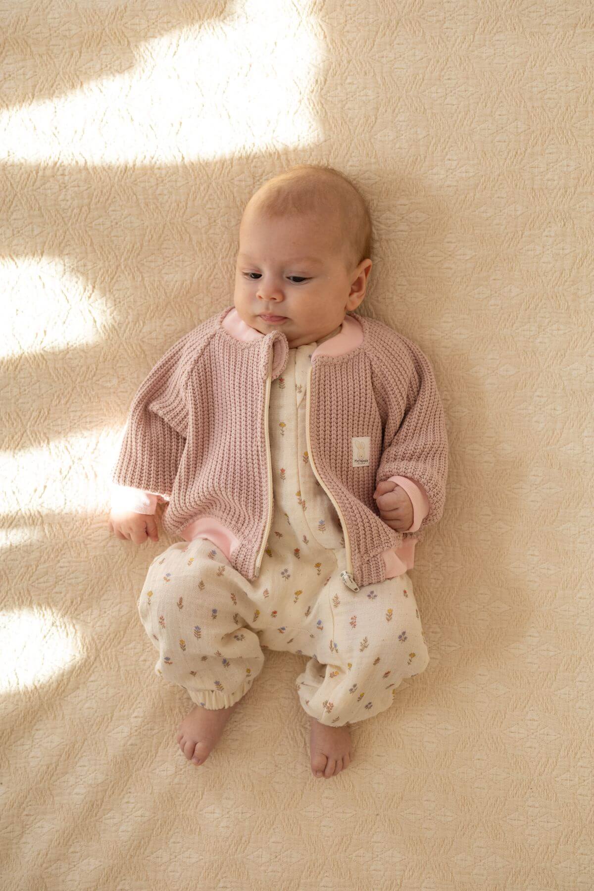 Dzięki swojej sweterkowej strukturze materiał nie tylko pięknie się prezentuje, ale również zapewnia odpowiednią przewiewność i komfort noszenia przez cały dzień. To idealny wybór dla rodziców, którzy szukają czegoś więcej niż standardowa bluza – stylowego, ale nadal praktycznego ubrania.