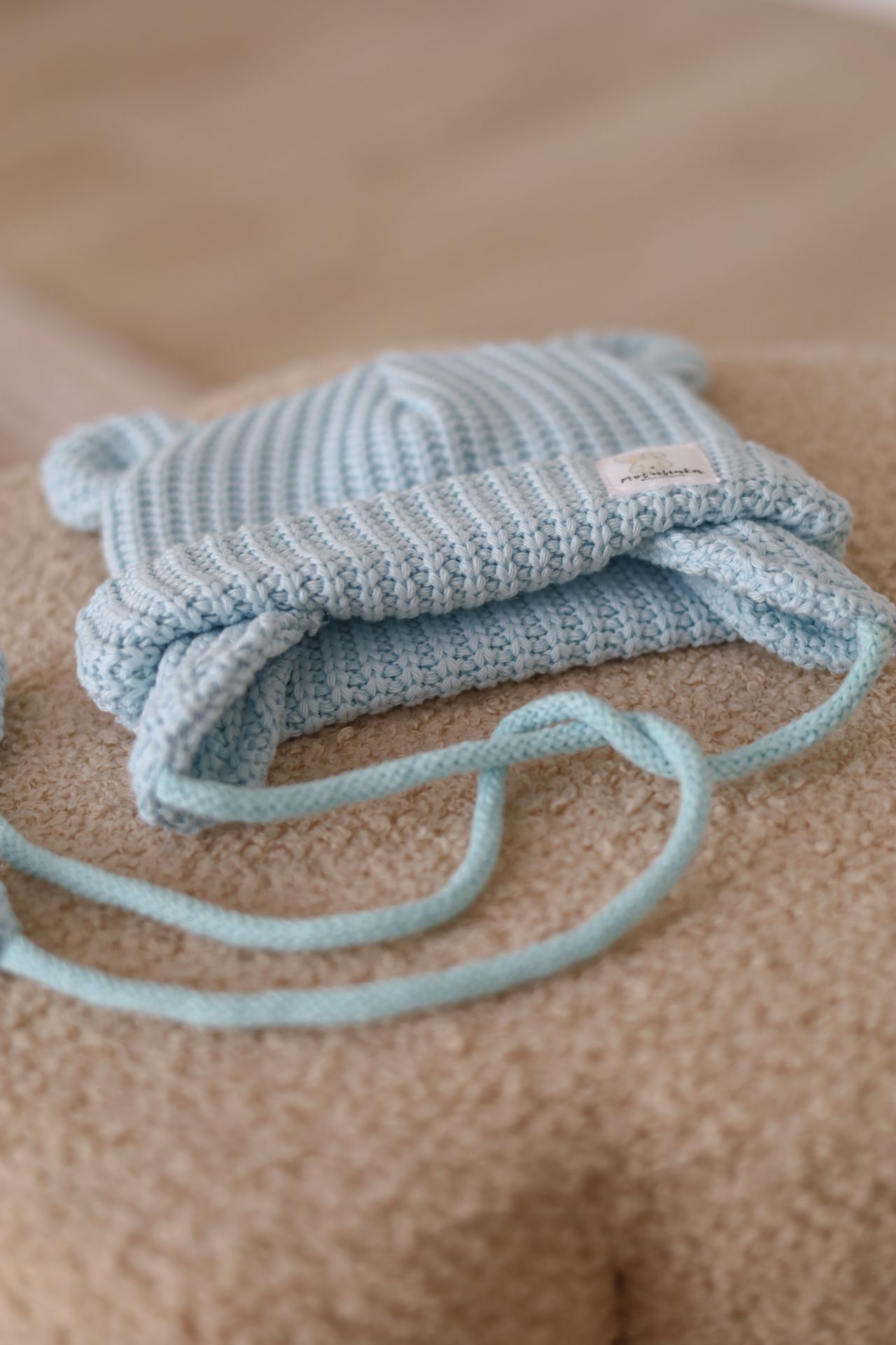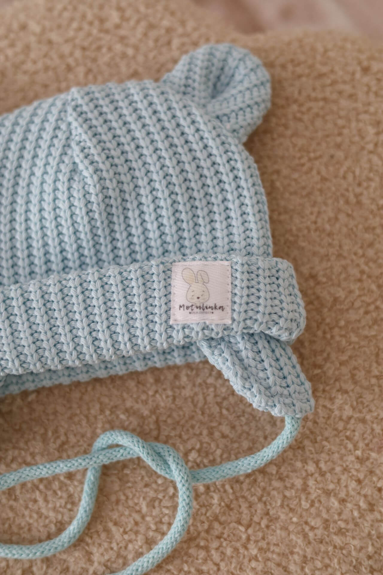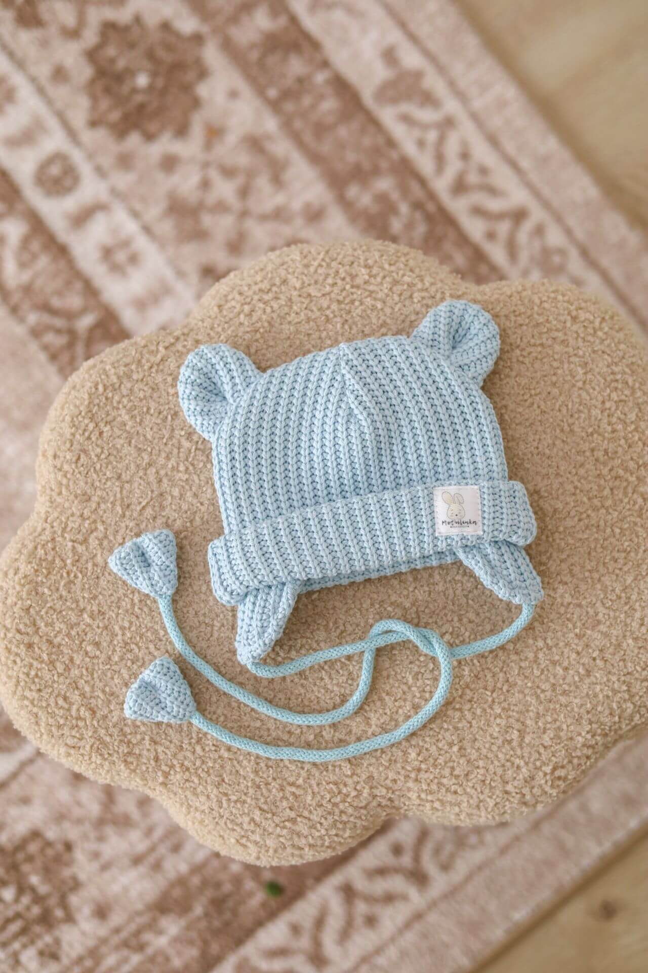 Czapeczka bawełniana sweterkowa dla dzieci i niemowląt – błękitna