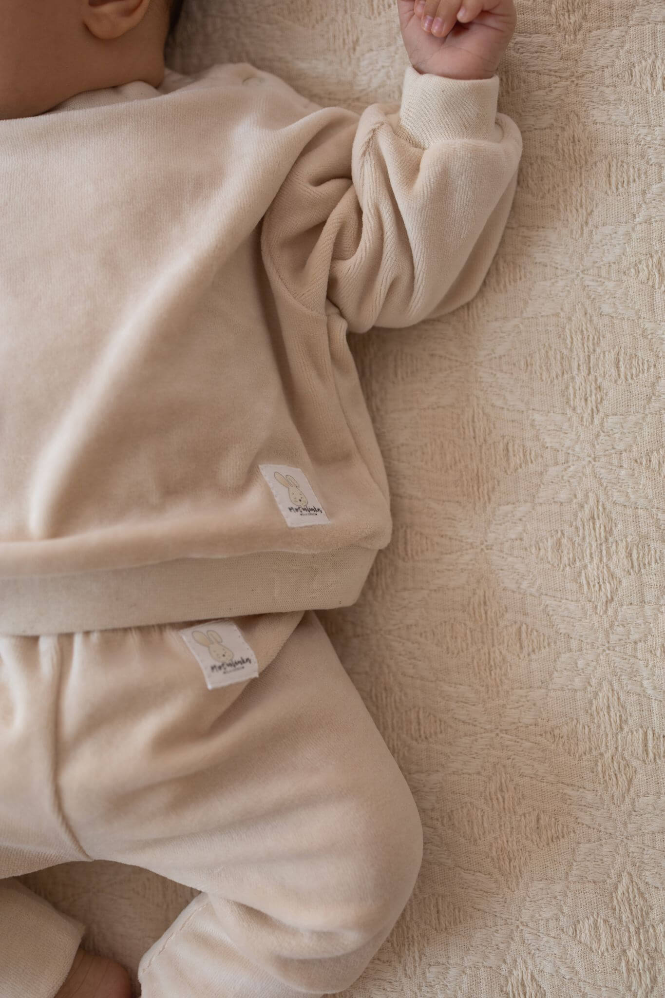 Komplet niemowlęcy welurowy – bluzeczka i spodenki ciepły krem