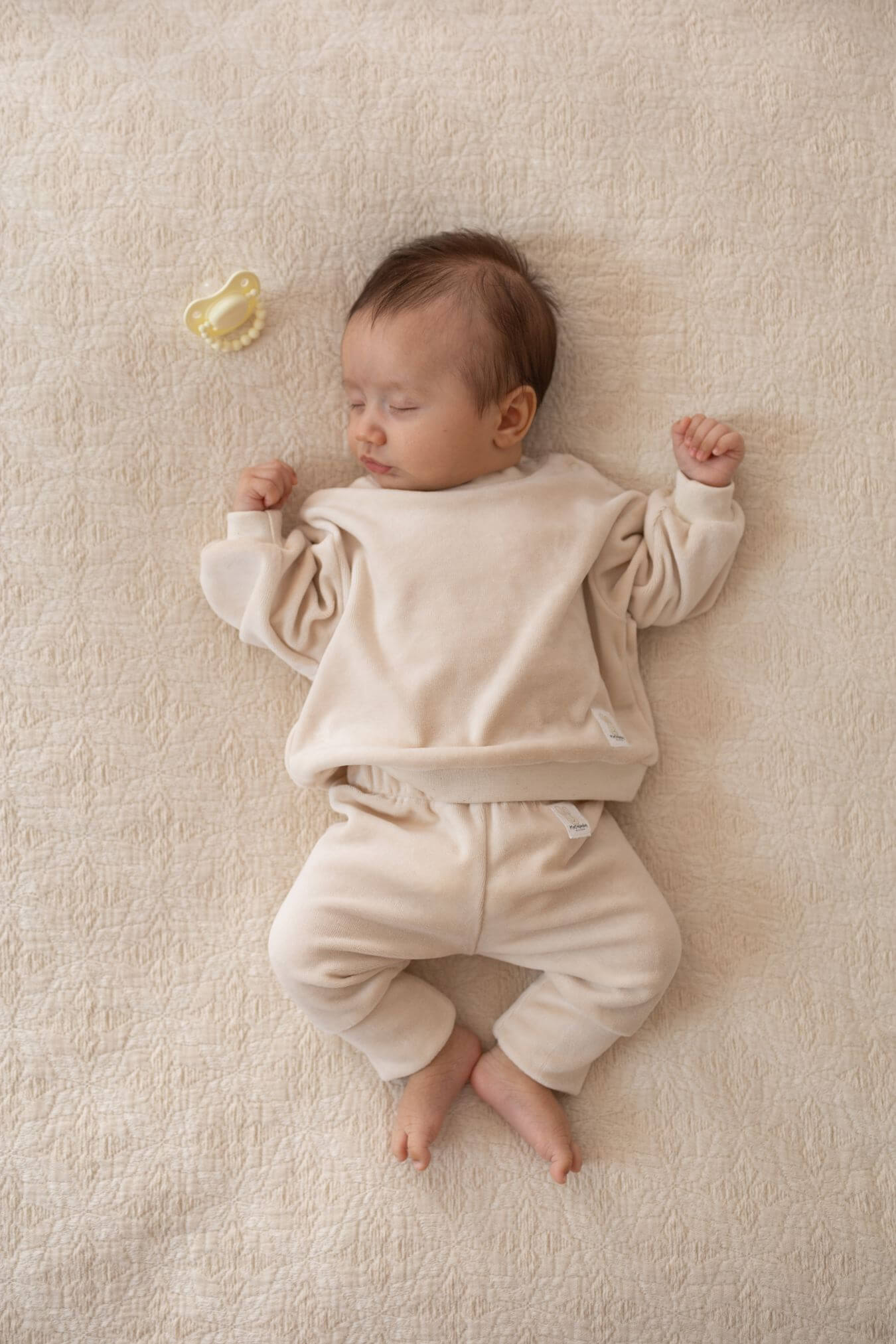 1 opinia dla Komplet niemowlęcy welurowy – bluzeczka i spodenki ciepły krem