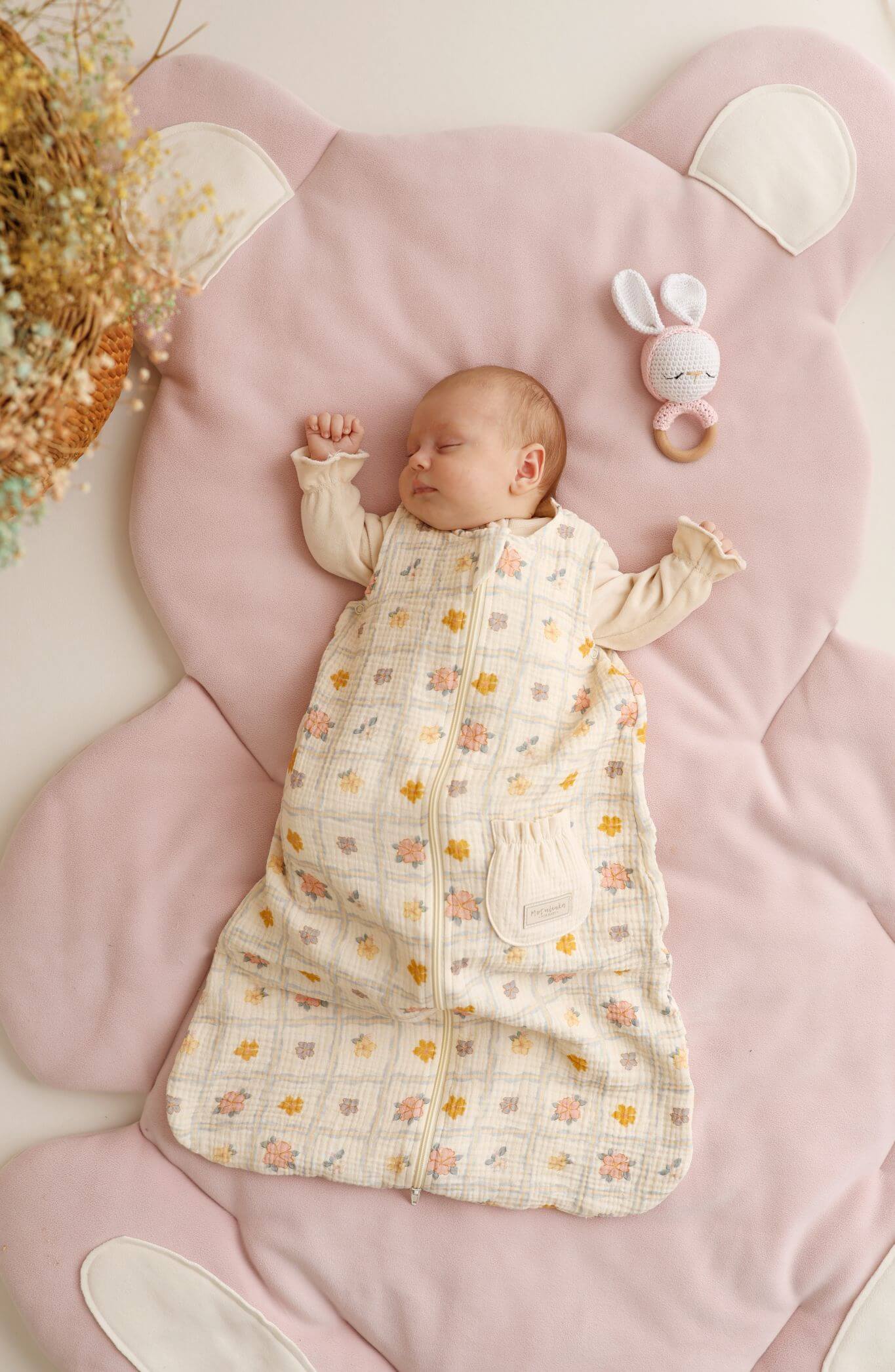 Letni muślinowy śpiworek dla niemowląt kwiatuszki w kratce