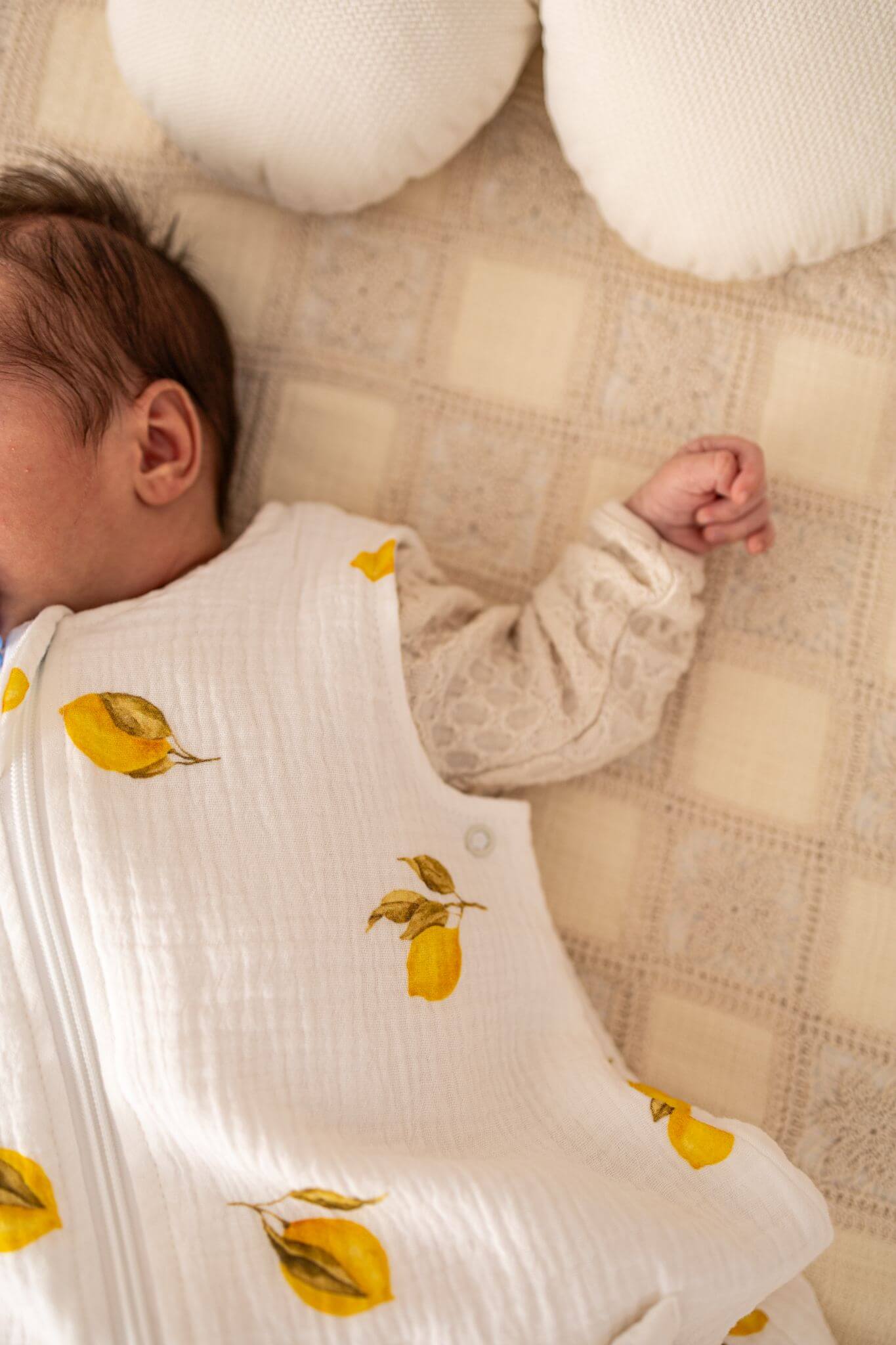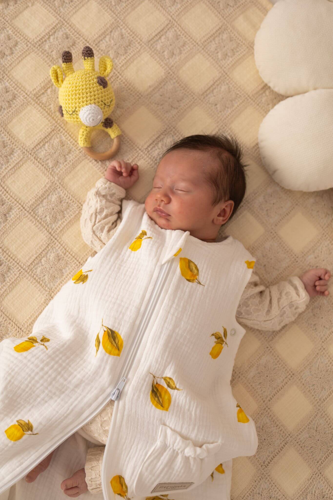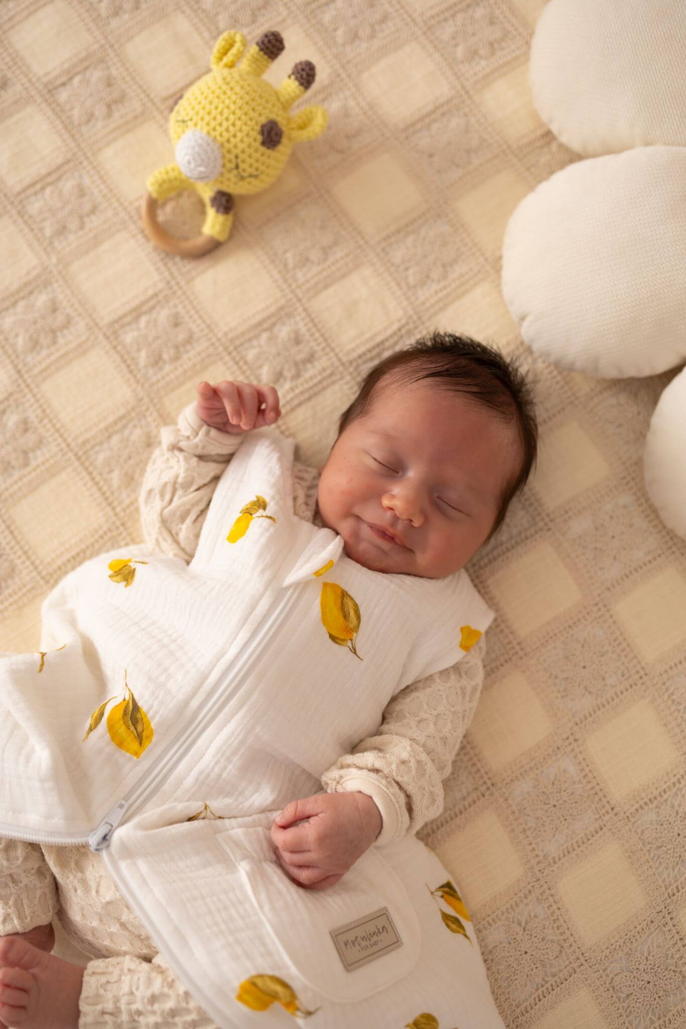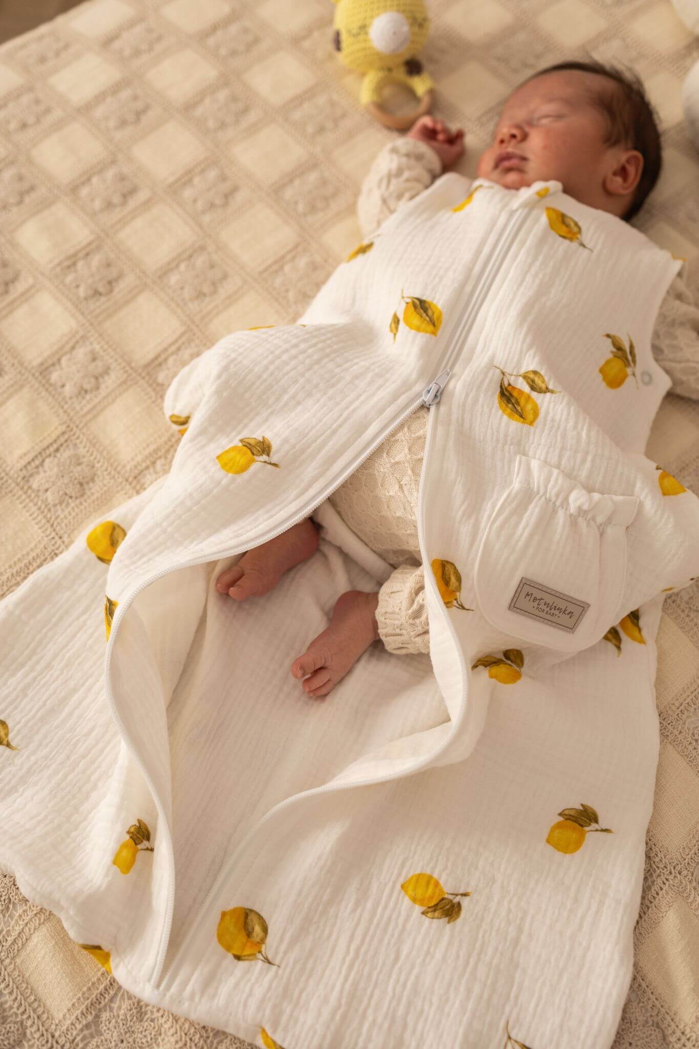 Letni muślinowy śpiworek dla niemowląt słoneczne owocki – cytrynki