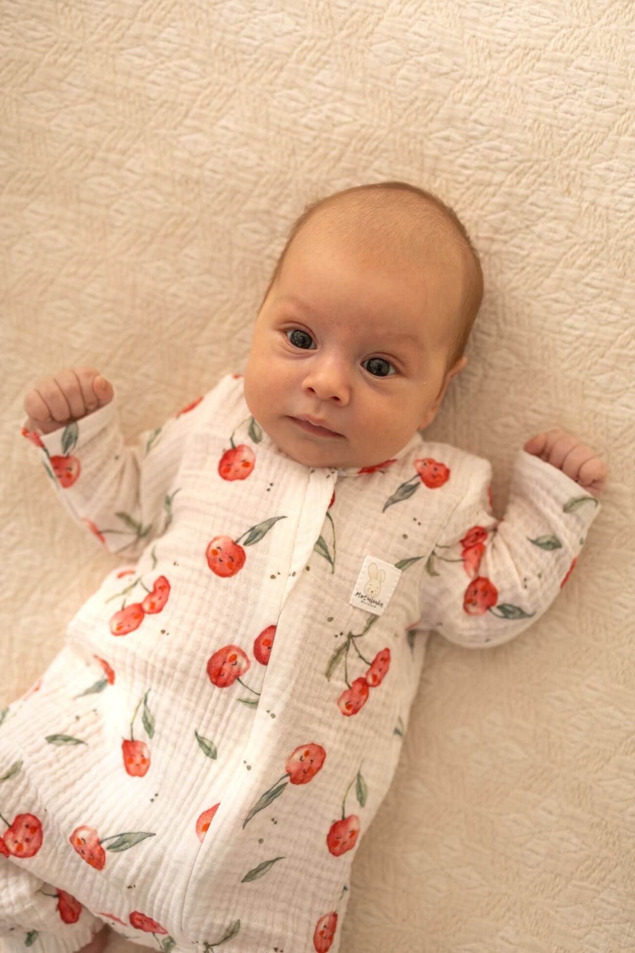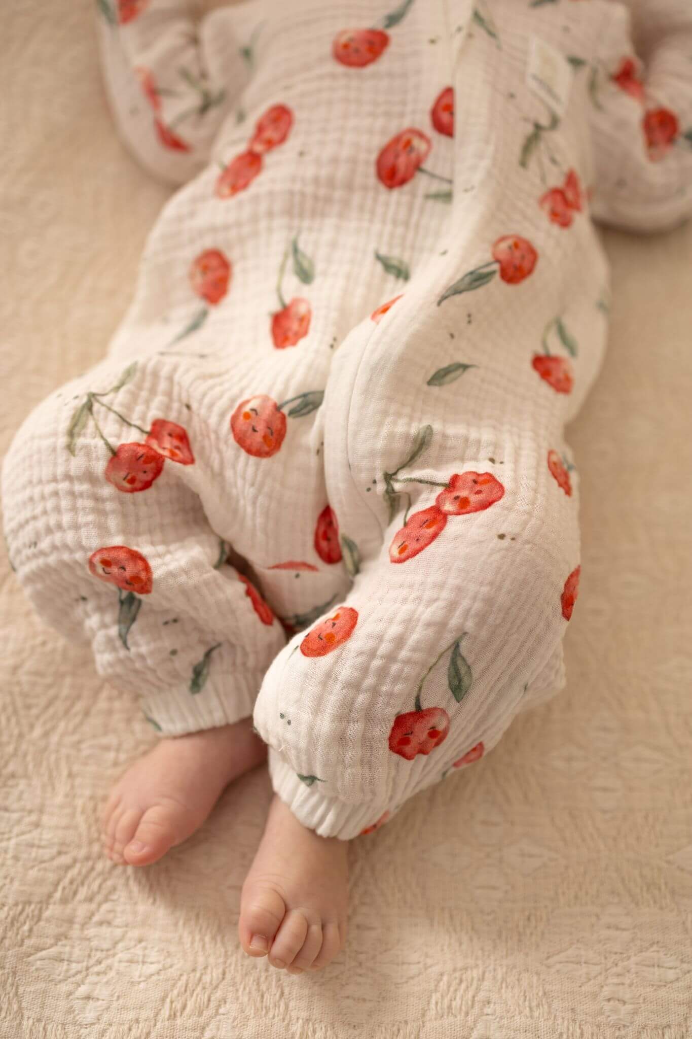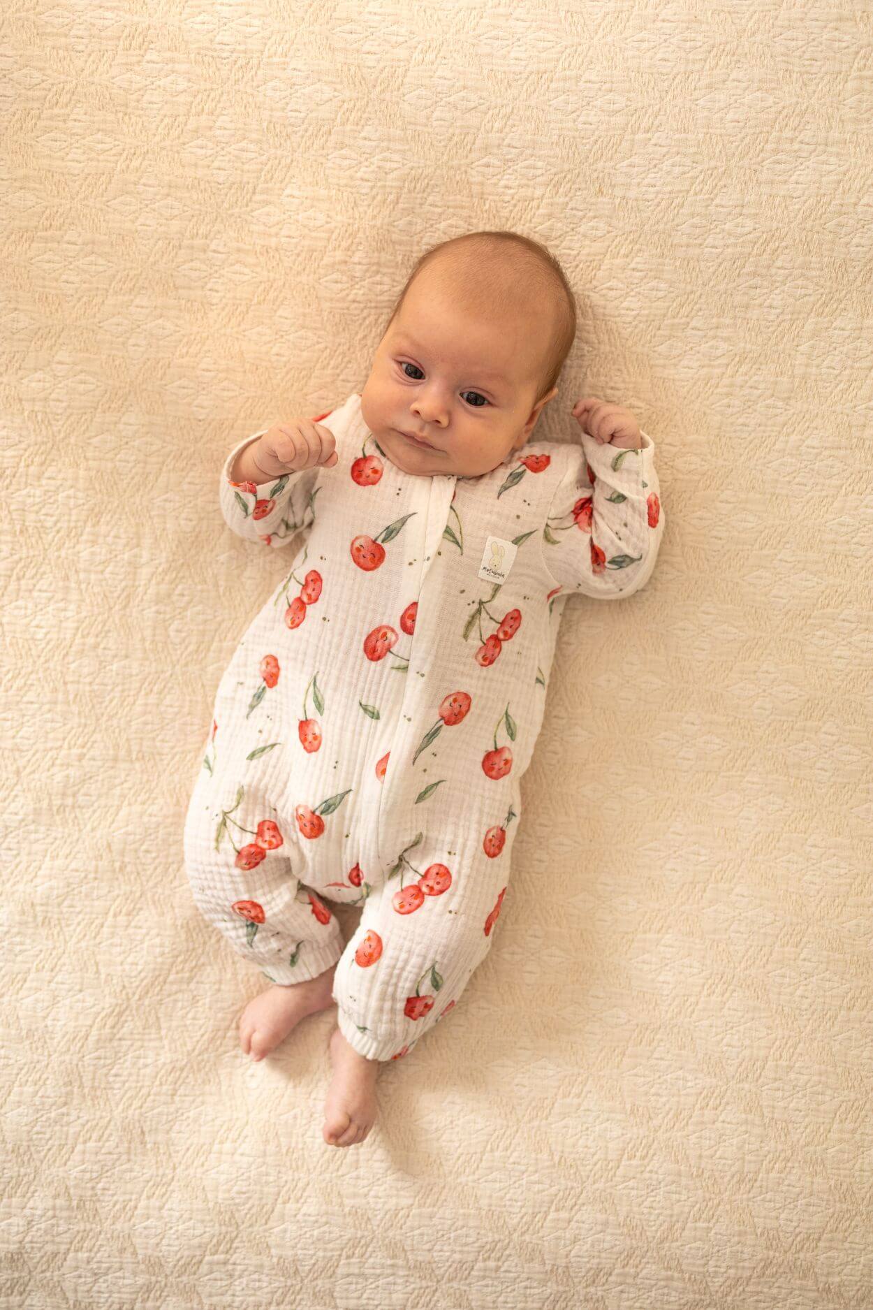 Rampers niemowlęcy muślinowy słoneczne owocki – wisienki