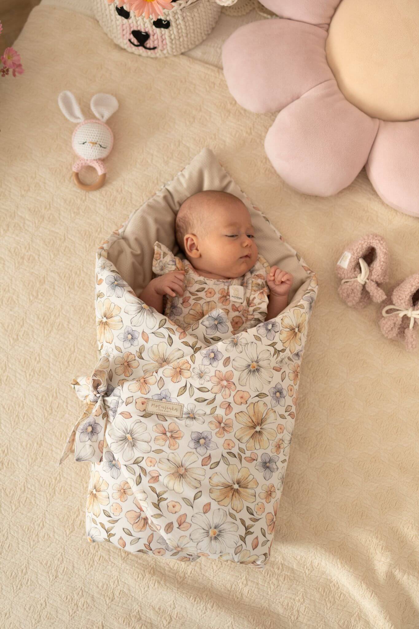 Rożek niemowlęcy pastelowe kwiatuszki – jasny beż