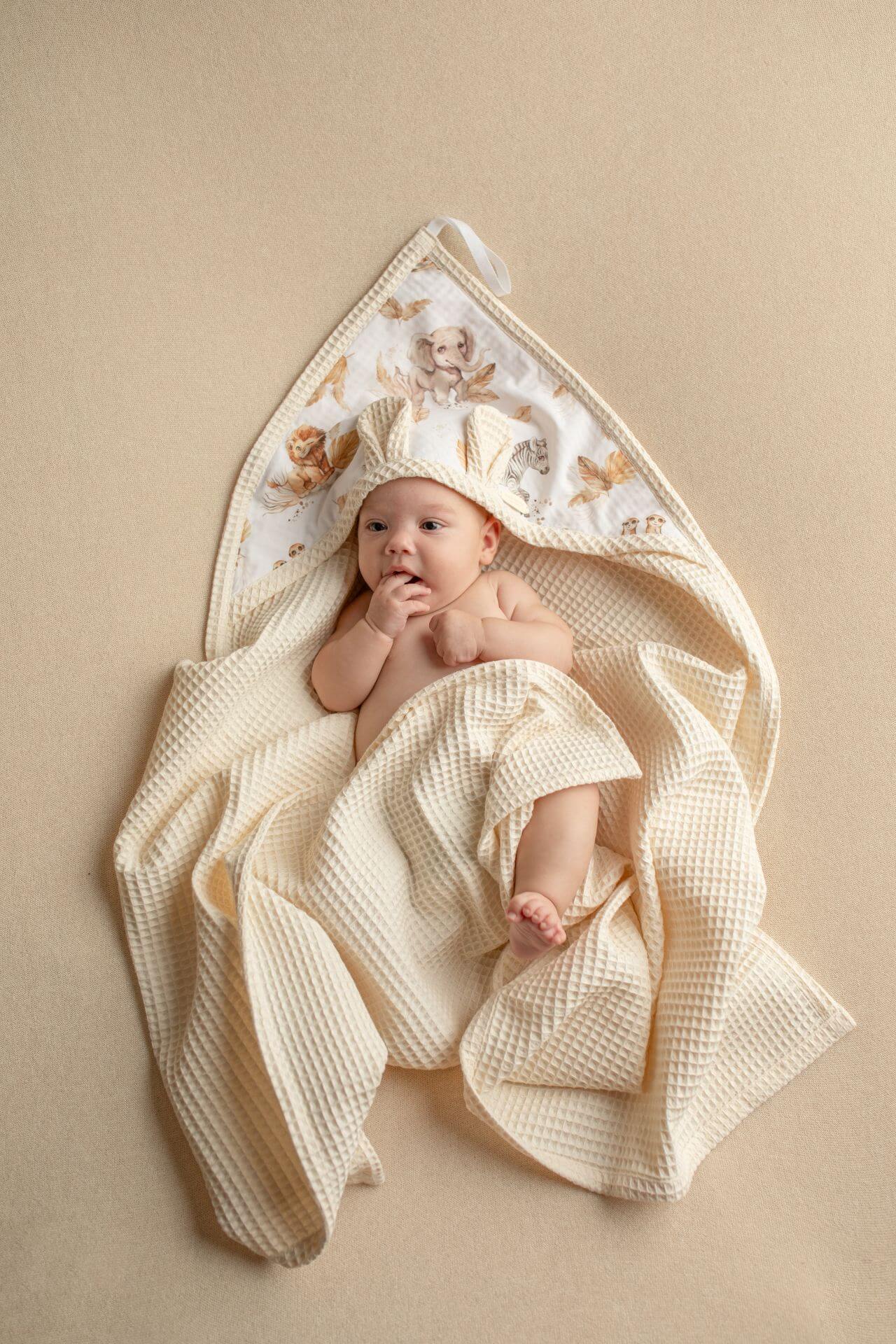 Ręcznik wafelkowy dla dzieci i niemowląt Safari – mleczny