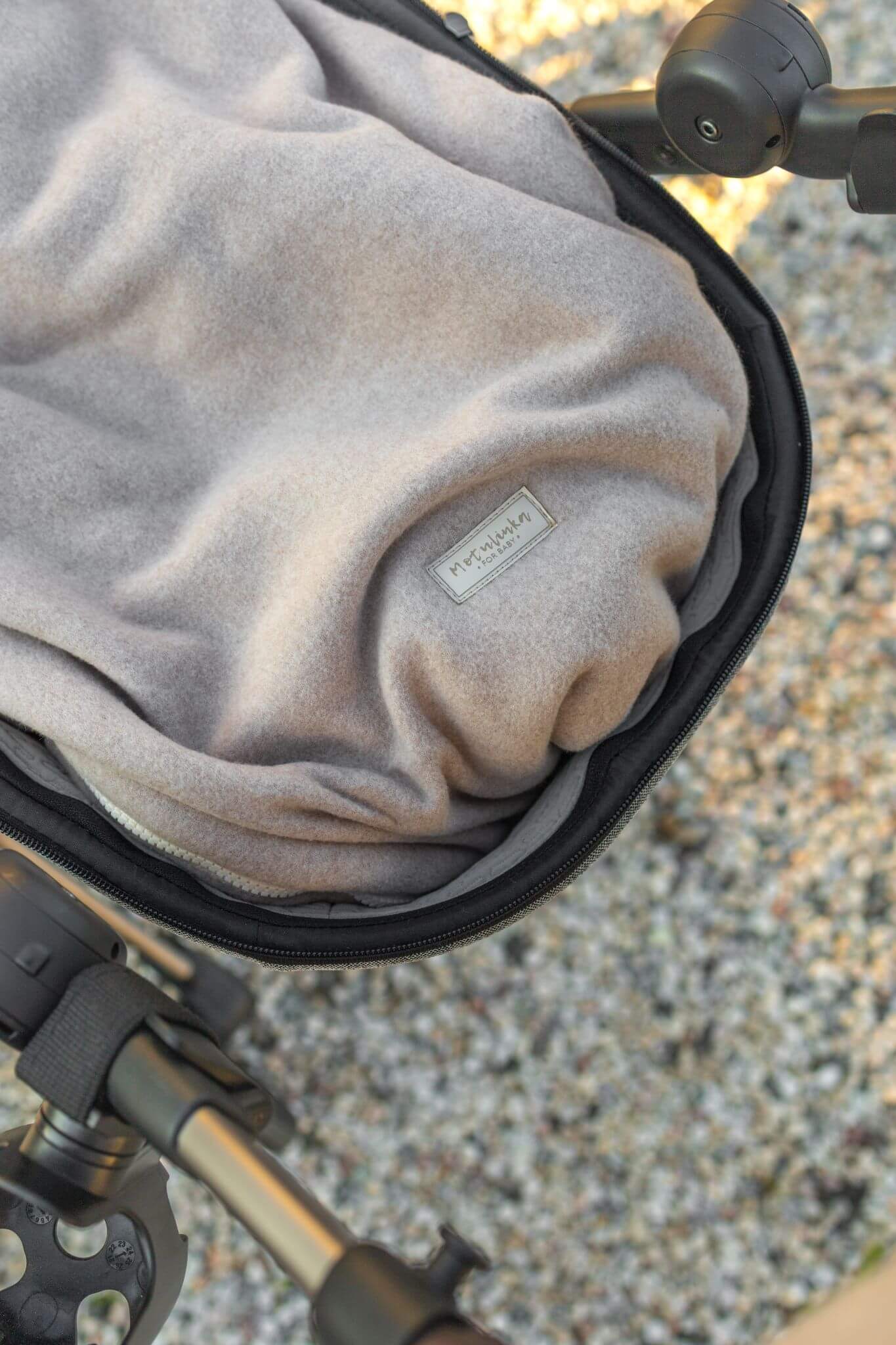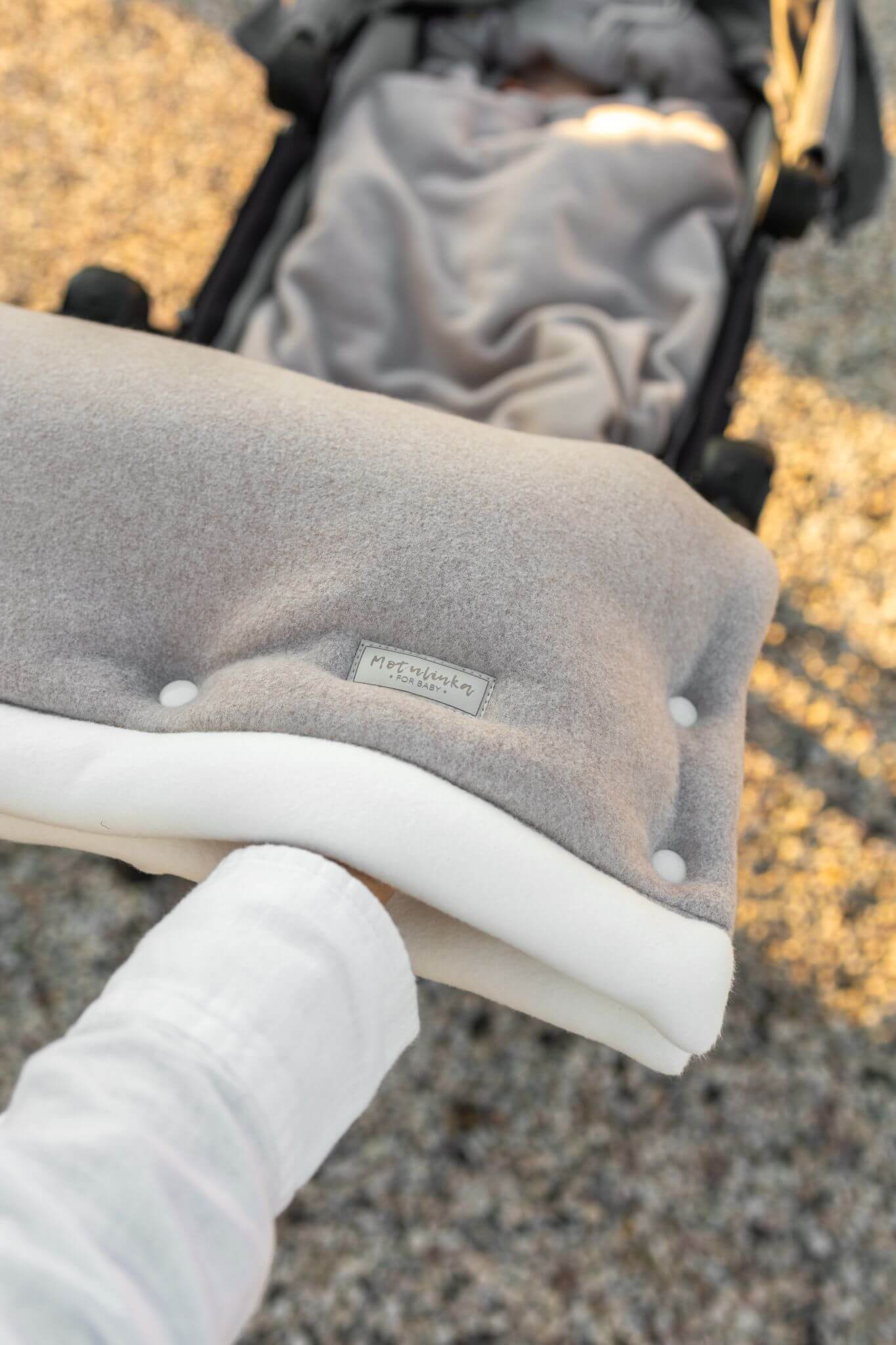 Dopasowana mufka (opcjonalnie) – dodatkowy element w postaci mufki na rączki wózka zapewnia ciepło i komfort osobie prowadzącej wózek.