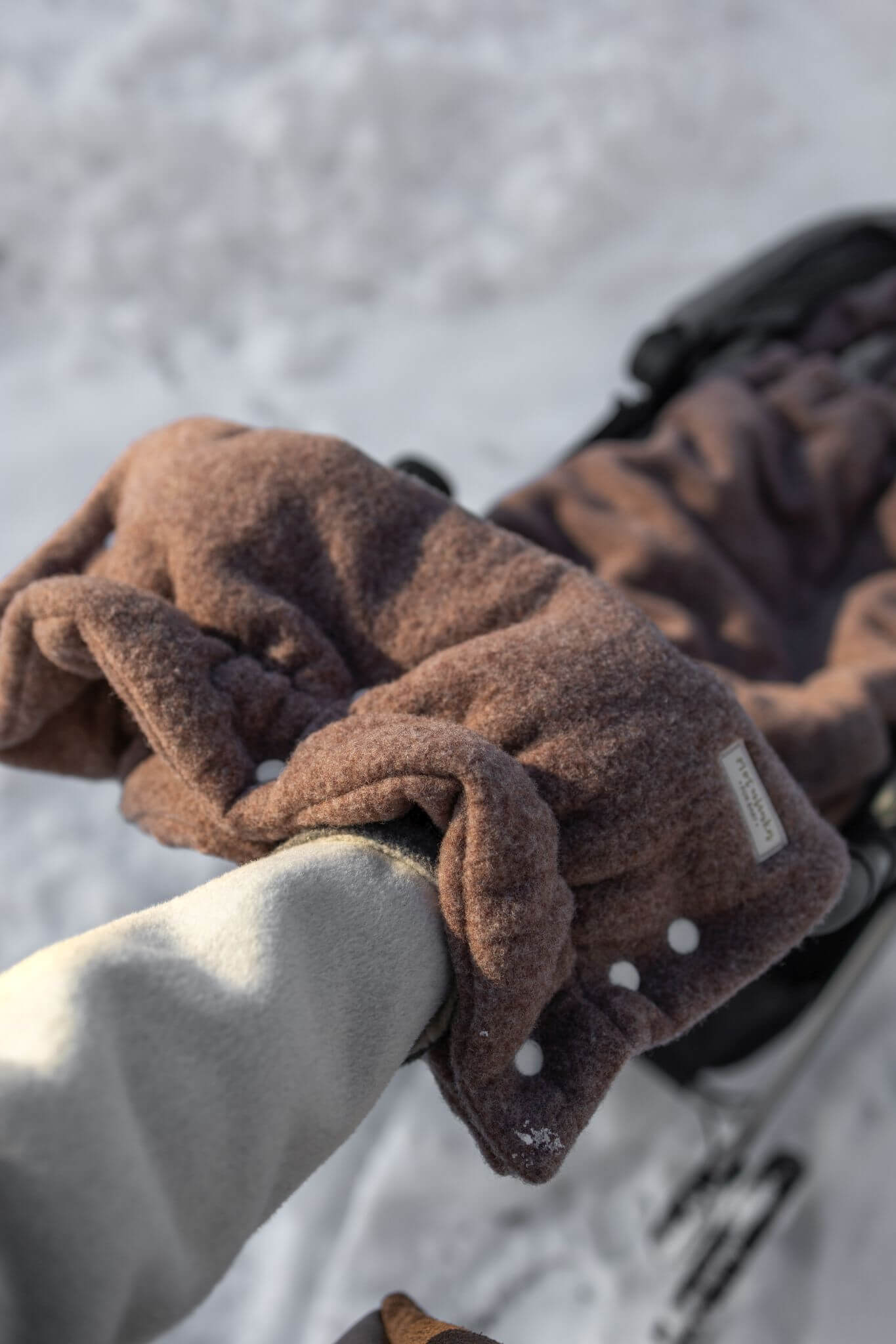 Do śpiworka możesz dobrać dopasowaną mufkę na rączki wózka, która skutecznie ochroni dłonie przed chłodem i wiatrem podczas spacerów. To niezwykle praktyczne rozwiązanie – dzięki niej prowadzenie wózka w zimne dni staje się znacznie wygodniejsze i przyjemniejsze.