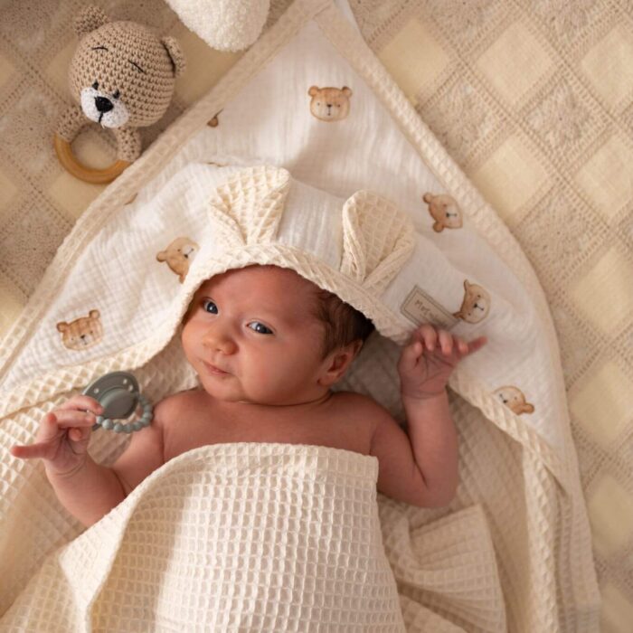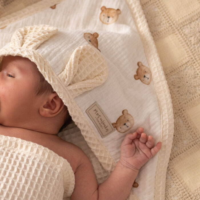 Ręcznik wafelkowy dla dzieci i niemowląt Miś uszatek – mleczny